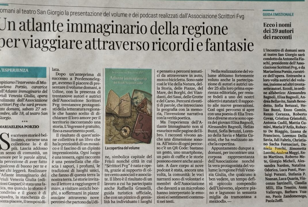 Il volume […] è un atto d’amore collettivo, frutto della cooperazione di quaranta autori e autrici aderenti all’Associazione Scrittori FVG.